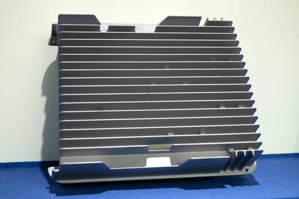 The fins are manufactured using high-precision aluminum die casting, ensuring uniform structure and excellent thermal conductivity. Precision finishing operations including chamfering and deburring, tapping, and machining of holes are performed to ensure accurate assembly. The surface undergoes polishing and sandblasting, enhancing surface flatness and heat dissipation efficiency. Finally, coating is applied to improve corrosion resistance and achieve customized appearance.