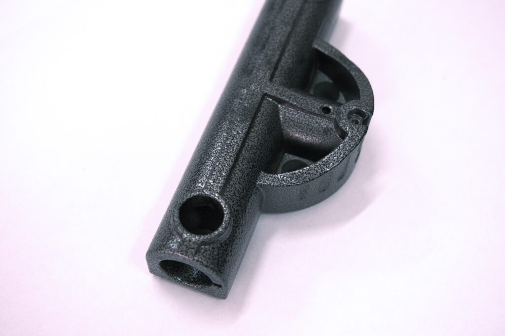 The component is formed by aluminum die casting, ensuring dimensional stability and structural strength. Drilling operations are performed to create assembly and functional holes. The surface is finished with powder coating, enhancing corrosion resistance, scratch resistance, and visual appearance.